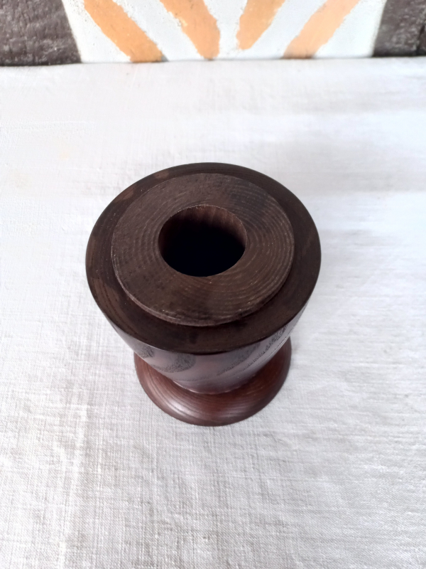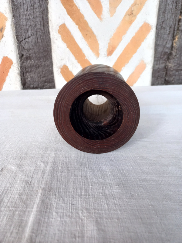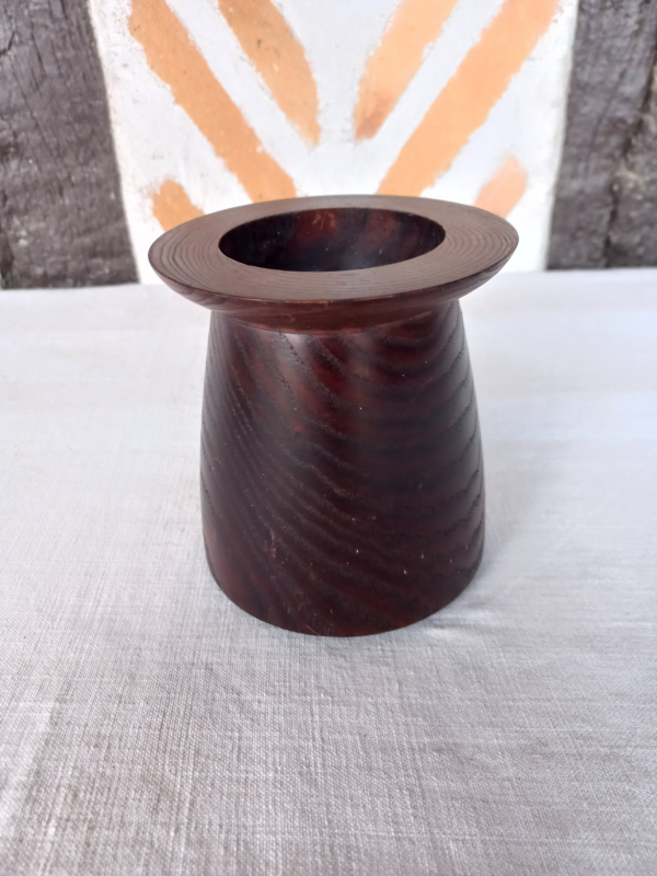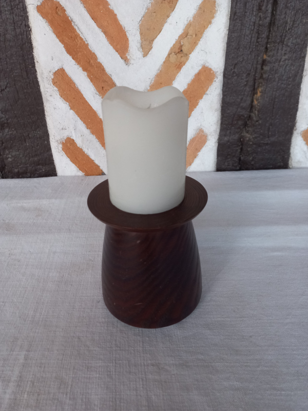 Bougeoir forme cylindre cintré bois wengé massif. Quelques minuscules points clairs. Epoque 1990. Design intemporele et épuré. L11xh12xp11. Ref1706.