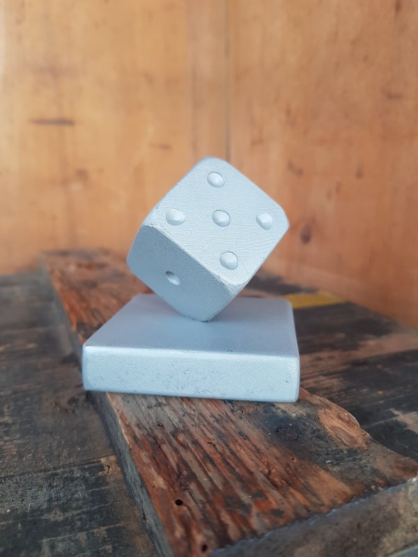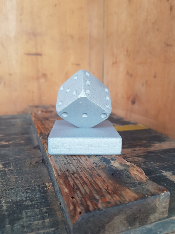 Très beau presse-papier en métal. Sablé. Univers du jeu : "Dé " posé sur la pointe. Soble base carrée. Objet pratique et décoratif. l7.5 x h7.5 x p7.5
